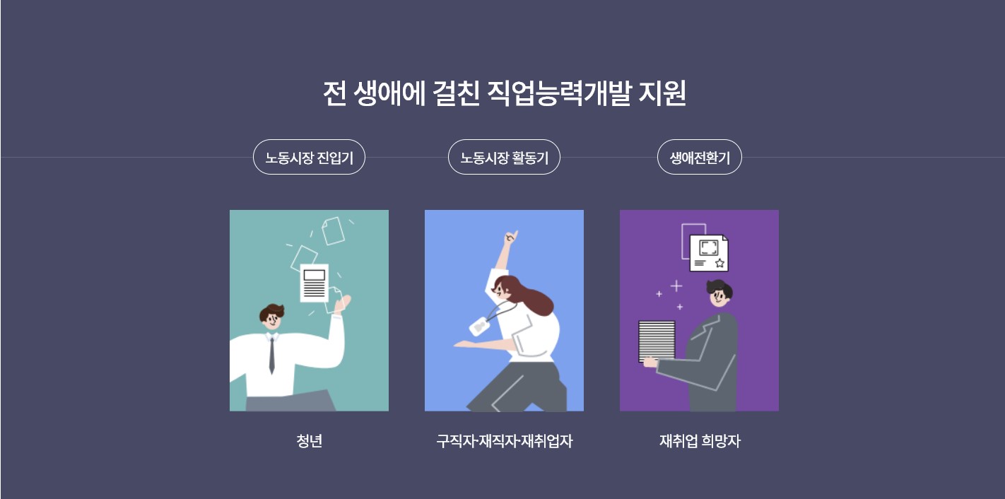 국민 내일배움카드는 빠르게 발전하는 사회에 맞춰 개개인의 역량개발을 위해 국민 스스로 직업능력개발훈련을 실시할 수 있도록 훈련비 등을 지원해 주는 정책이다. 국민 누구나 신청가능하며 온라인/오프라인에서 배울 수 있어 자신의 능력을 향상하는 좋은 제도이다.